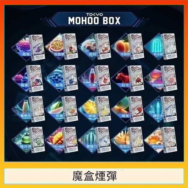 2024年,TOKYO MOHOO BOX 領先推出全新的魔盒煙彈系列,不僅帶來突破性的技術創新,還以優雅商務風格呈現,為每一位電子煙愛好者帶來全新的吸煙體驗。無論是豐富的口味選擇還是先進的霧化技術,TOKYO MOHOO BOX 都能滿足您的需求,讓每一口煙霧都更加完美。